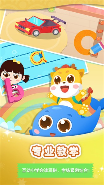 拟人的拼音字母融合再动画故事中,通过象音、象形让宝宝高效识记拼音字母发音和外形。拼音顺口溜朗朗上口,简单有趣易记。搭配趣味主题场景,将枯燥的拼音字母描红变成太阳花、组装小汽车等儿童喜爱的趣味练习场景,宝宝在不知不觉中学会拼音。