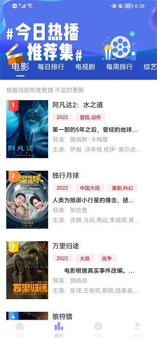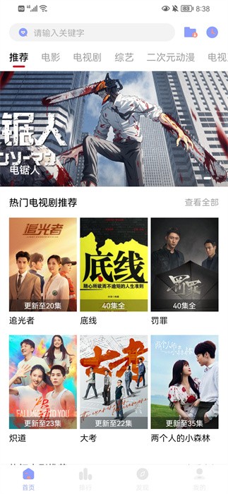 2、界面简洁,主界面的各种最新影视推荐,让你轻松找到新剧热剧,没有任何的广告。