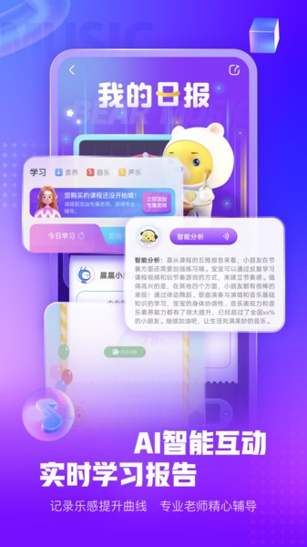 小熊音乐手机版是一个专为儿童设计的音乐学习平台,提供从初级到高级的课程,内容丰富有趣。它结合了视频教学、绘本、音乐卡片等资源,帮助孩子循序渐进地掌握音乐知识。专业团队包括国际知名音乐院校老师和学前素质教育专家,为孩子们提供了一对一点评和全程陪伴式辅导。此外,app还采用了AI互动课堂和多生态智能教学模式,让学习过程更生动有趣。