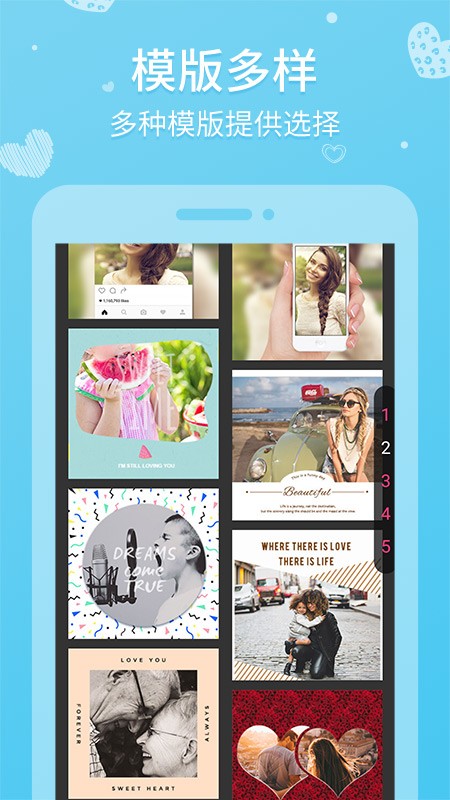 1.上百款拼图模板和海报布局,满足你所有的拼图要求。