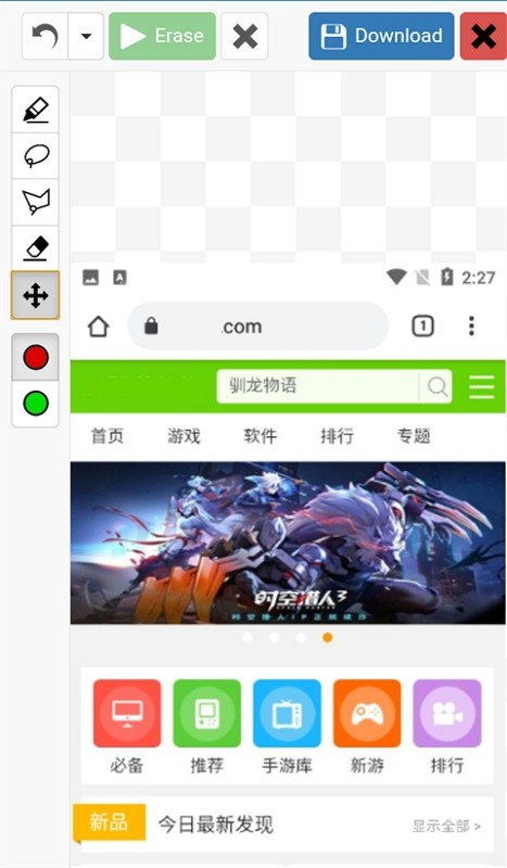 3、工具选择后,用户首先需要筛选区域,之后点击【Erase】进行处理图片。