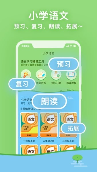 小学语文同步辅导:课文预习・复习・拓展・朗读,覆盖小学语文的每一篇课文 - 在同步每一篇课文的预习视频和音频里,老师帮小朋友读通课文,学习字词,结合课后练习,学习每一篇课文的主要内容。小朋友还可以在课课听APP里朗读每一篇课文,加背景音乐配音形成朗读配音作品,分享给老师和家长听。复习部分老师帮助孩子背诵课文、听写词语、提供习题、识字、拼音、积累、阅读理解、点读、写字、查字典、查笔顺、字帖等配套学习软件,帮小朋友复习每一课的重点和难点。拓展部分老师挑选了与课文内容相关的拓展知识,丰富小朋友的作文素材和知识储备。课程内容和学习工具覆盖小学一年级到六年级小学语文上册下册每一课课文内容。
