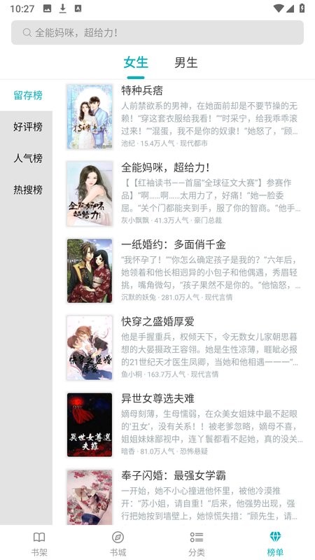 4、书架管理方法省时省力和精力,登陆账号自动同步书架,决不能遗失好书推荐。