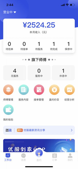 优服商家最新版是专门为商家提供接单经营办公服务的应用app,专业正规,随时随地开启接单,智能推送,掌握实时消息,实时记录交易历史,提供师傅管理、接单管理、经营分析等功能,轻松查看了解订单,统计分析,助力运营管理!