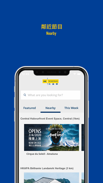 快达票推出全新手机应用程式,让你购票更快、更易、更轻松。应用程式的介面设计简洁,节省载入时间。购票完成后,应用程式内置购票纪录功能,让你一次过翻查所有已购买的节目。此外,应用程式支援GPS功能,打开节目列表,立即为你指出附近的热门节目。