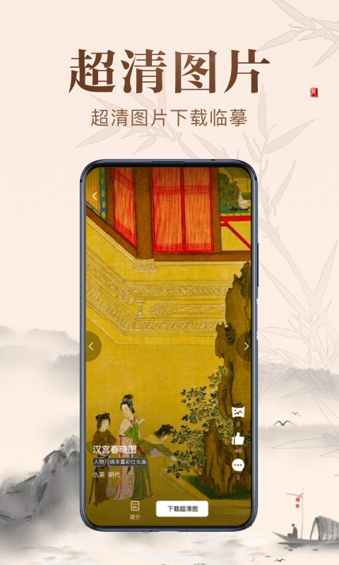APP里的图库资源非常丰富,从北宋赵佶到明代朱瞻基的作品都能找到。每天还会推送符合时令的画作,更新日志里还新增了群聊功能,可以和志同道合的朋友一起交流作品背后的故事。