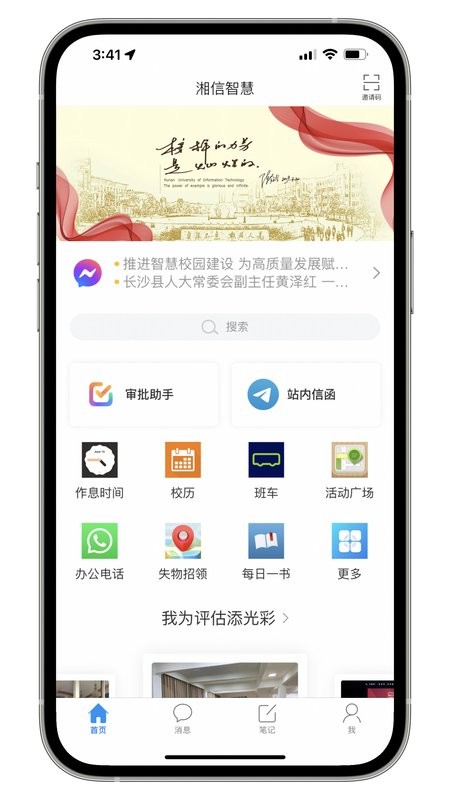 湖南信息学院湘信智慧是为师生提供的掌上校园平台,统一身份认证登录使用,校园概况、新闻资讯、通知公告信息一手掌握,还提供审批助手、校历、失物招领、班车等功能服务,更支持场馆预约,在线笔记,了解实时消息,带来一站式服务体验!