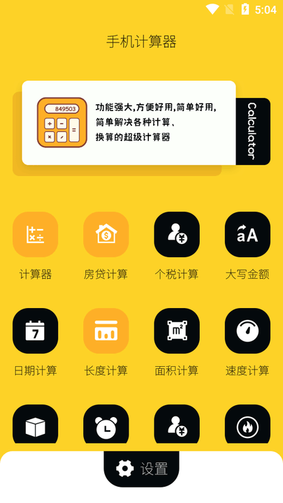 液体计算器安卓版是提供计算器功能服务的应用工具,可以适用于多种计算场景,支持基本计算、房贷计算、个税计算、日期计算、长度计算、面积计算、速度计算等,随你选择,在线输入,自由设置,功能强大,方便好用,解决各种计算、换算问题!