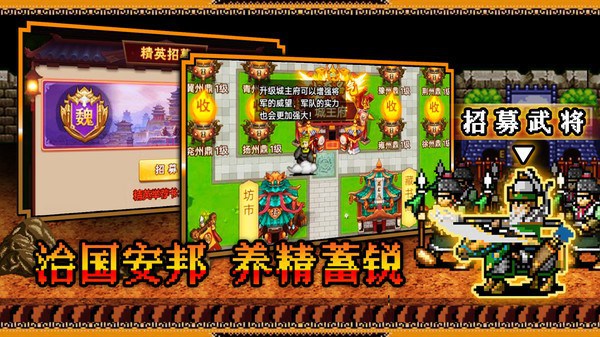 -- 通过招募和活动获得各种强大的武将,不断提升实力,合理排兵布阵