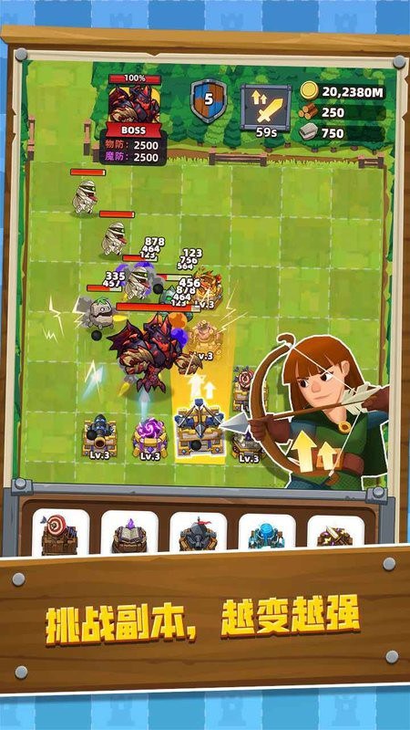 为应对源源不断的怪物入侵形势,你需要在城外丛林中进行防御塔的布阵,选择最长的围堵路线阻止怪物前进,保证输出火力伤害最大化,击杀每一波BOSS!