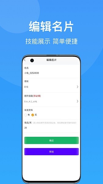 匠小佐师傅端,专为维修师傅打造的接单软件,在这里师傅可以便捷的编辑自己的名片信息,展示自己的安装案例,设置自己的出工价位,查看最近的客户订单信息,更方便的找到维修安装项目,有需要的用户可以下载使用!