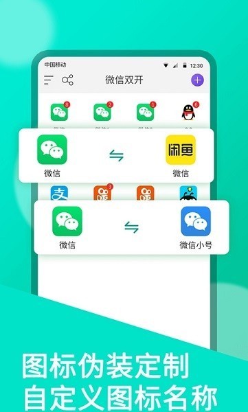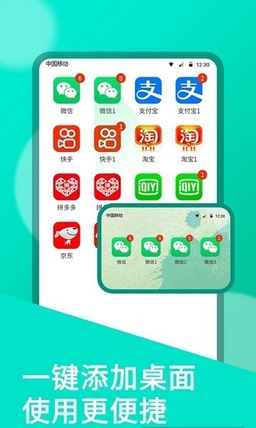 「系统分身」,状态瞬切,一个手机当两个用。可轻松实现几乎所有应用的多开分身,完美解决用户多账户同时在线的需求。