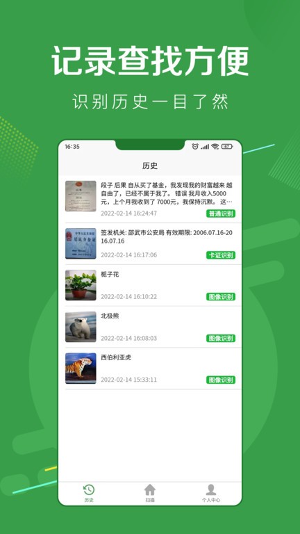 软件还支持很多实用功能,比如扫描身份证、银行卡、营业执照等证件信息,甚至能识别车牌和行驶证。此外,它还能扫描动植物、二维码和条形码,满足多种场景需求。最新版本优化了用户体验,并增加了原图校对功能,进一步提升了使用体验。