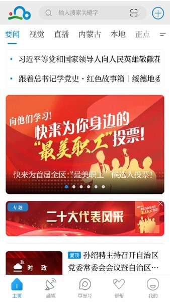 2.设有“头条”“推荐”“政情”“草原号”“视频”“直播”等十大新闻资讯类频道