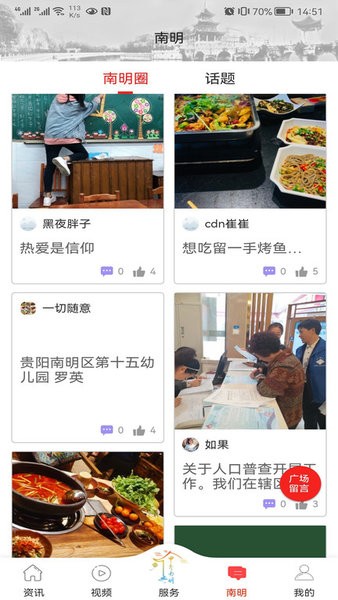 爽爽贵阳甲秀南明app是专为用户更加了解南明打造的人文宣传软件,许多南明的文化旅游信息都可以在软件之中获得,帮助用户轻松知道更多南明的资讯,还有许多的生活服务随时都可以获得。