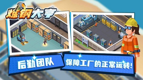 1、卡通画面的模拟经营类游戏,玩家将扮演炼钢厂的老板,通过收集废品获得资源,从而进行炼钢