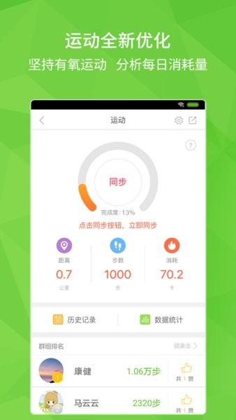 4、统计历史运动数据,方便运动数据分析,掌握运动趋势变化。