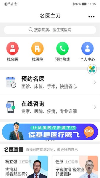 名医主刀官方版是让用户随时都可以在软件之中预约名医的医生预约平台,海量的名医可以在这里自由的进行预约,帮助用户快速的找到更多的知名医生,更多的名医专家都可以在这里找到。