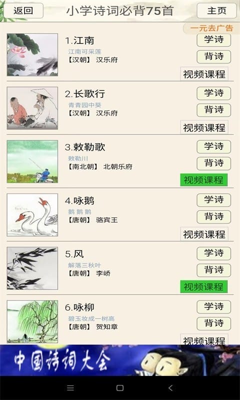 3、视频课程,让你在线学习诗词的 含义,提高对诗词的理解,便于背诵;