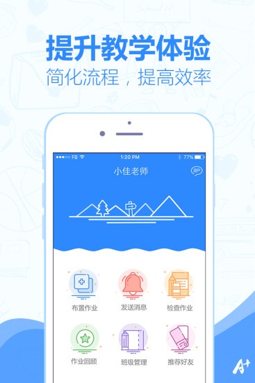 帮助老师便捷布置作业、发送通知、检查作业以及班级管理,