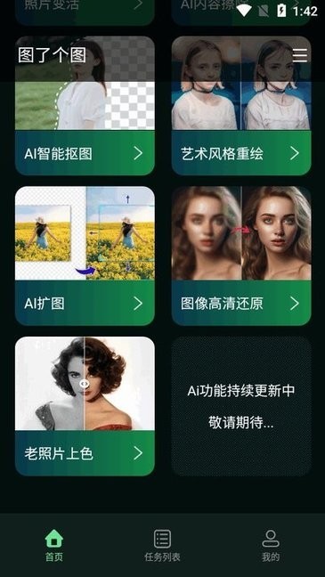 图了个图.apk是功能强大的ai图片处理软件, 融入了最新的ai图像模型,更快的处理速度,更优质的出图效果,支持ai图片内容替换、图片背景编辑、照片变活、ai智能抠图等功能,根据不同需要自由选择,个性化编辑设置,制作全新作品!