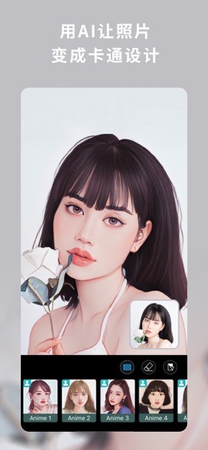 -- AI风格 C 一键将照片转成动漫风和多种绘画风格,一秒化身动画角色 ! 此外,还可以将真人照片卡通化,变身超可爱卡通人物。