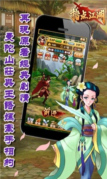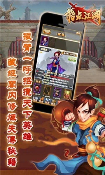 《指点江湖》是一款以江湖武侠为题材的角色扮演以及卡牌策略类型的游戏,这是一款目前在全平台上最重剧情的武侠手机游戏,让您在脍炙人口、感人至深的剧情中,畅快的笑傲江湖!