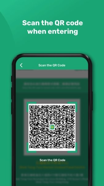 当你进入场所时,开启应用程式,按“进入”并允许使用手机拍照的权限,然后扫描场所展示的特定二维码