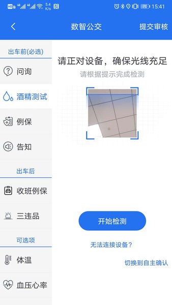 通过蓝牙无线连接酒精检测仪、体温仪、血压仪等智能设备实时获取驾驶员健康数据。
