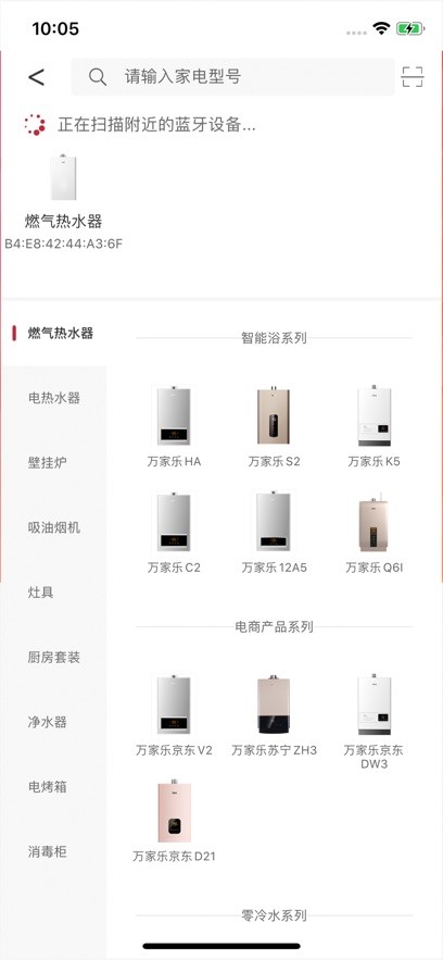 搜索需要的电器,点击搜索,进入输入相关的信息检索;
