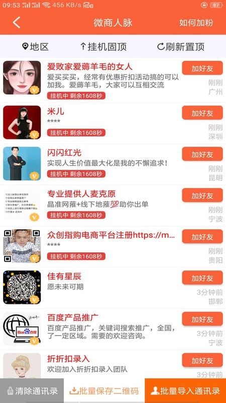 超级人脉手机版是一个帮人拓展人脉和做生意的神器,特别适合微商、销售、店主这些需要大量客户资源的人。它能根据你的需求推荐合适的人脉,还能发布产品、招募团队,功能挺全面的。最让我觉得实用的是它的区域定位功能,可以快速找到附近的朋友,这样线下活动也会方便很多。