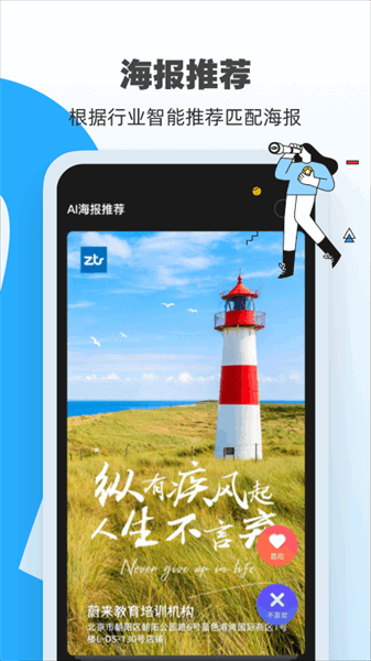 AI海报是一款让海报设计变得简单,选一喜爱模板,改字换图便可制作出精美海报。无需掌握设计技能,轻松解决作图需求。