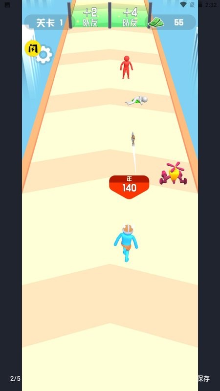 1、关卡的难度会随着不断过关而增加,控制自己的小人在赛道上跑酷;