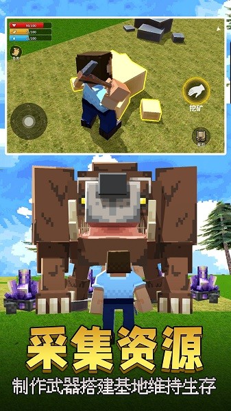 1、硬核末日像素沙盒生存冒险玩法,合理收集并利用资源是活下来的重要条件。