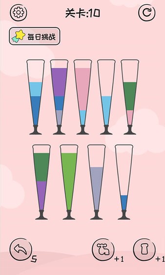 轻击水瓶即可开始游戏,只有相同颜色且有足够空间才能开始倒沙;