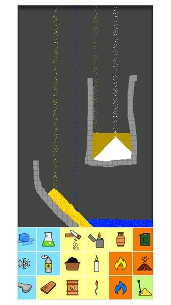 使用粉尘模拟器,您可以创建和销毁所有东西,您会发现许多激动人心的实验:开水,下雨,着火和爆炸……