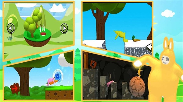 这个游戏看起来挺有意思的,是一个以丛林为背景的跑酷冒险游戏。你扮演一个魔性的兔子人,在充满野生动物和陷阱的地方跳跃闯关。画面设计得很可爱,颜色鲜艳,场景多样,玩起来应该很放松。
