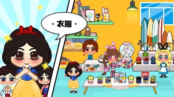 在游戏中,你可以添加各种角色,探索不同的商店和活动,完成任务或短剧表演,还能和家人朋友一起玩,把游戏变成学习或娱乐的过程。游戏还提供了丰富的物品和装饰,玩家可以自由搭配,创造属于自己的独特风格。