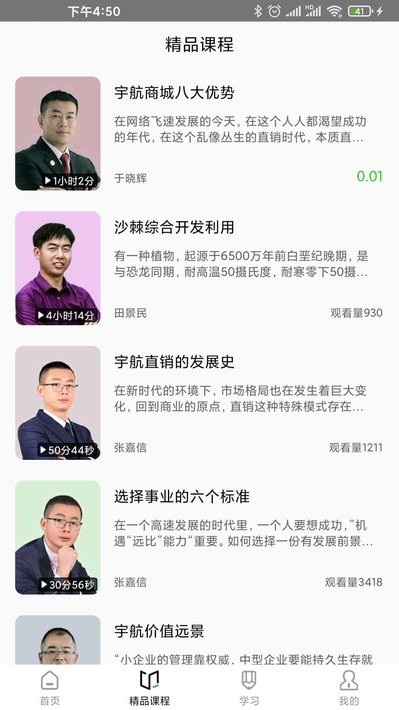 宇航课堂手机版为大家提供了超多在线精品课程,随时随地打开就能搜索各个大咖的直播课堂,同时还有商学院可以加入,帮助大家不断提升职业素养,每次学完课程都会获得积分,累计的积分可以去兑换相应的福利礼包哦!