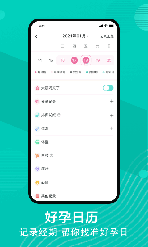【经期日历】自动推算每月经期,白带、同房、心情、体温、排卵、备忘等管理的帮手