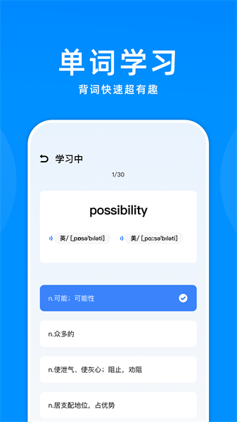 最让我觉得贴心的是它的课程设置,覆盖了从小学到考研的各个阶段,完全能满足不同人群的需求。而且玩法也很简单,每出现一个单词就有四个选项,选对加分,选错扣分,刺激又好玩,不知不觉就记住了不少新词汇。