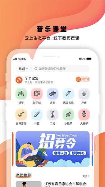 一键轻松选名师,一键清晰选课程钢琴、小提琴等32种乐器学习,先体验后报名。