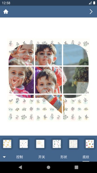 4、能根据自己的喜好自由添加30种不同风格的切图背景,再通过不规则的组合组成大图