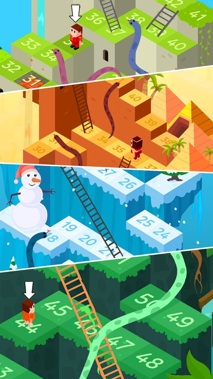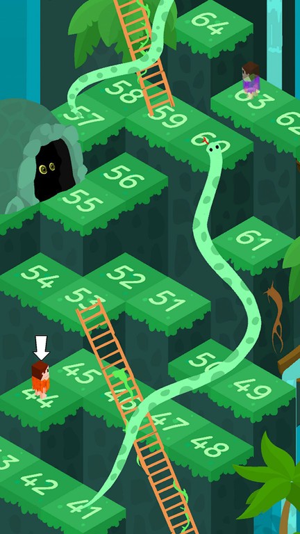 蛇梯棋安卓版棋盘上除方格外,还绘有梯子、蛇,以骰子随机决定棋子的步数,途中若抵达梯子或蛇的格子会移至其他格,以抵达终点为胜利。
