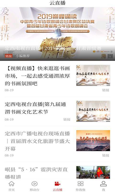 本地直播,电视台直播,艺术节直播,旅游节日直播等云直播节目这里都有。