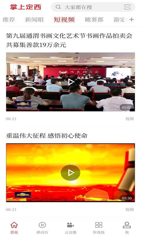 掌上定西app手机版能够查看本地以及全国的新闻资讯,支持在线看直播,直播内容包括了各种文化活动,电视台节目等,不仅可以看新闻看报纸看视频,还提供了便民以及政务服务,还能查看趣味的同城短视频。