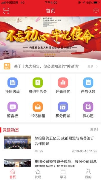 交流互动:扫描签到、互动社区、三会一课更高效;