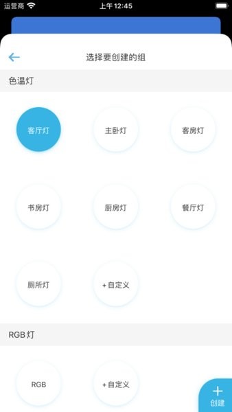 智光灯控app页面,点击选择添加组件项目。