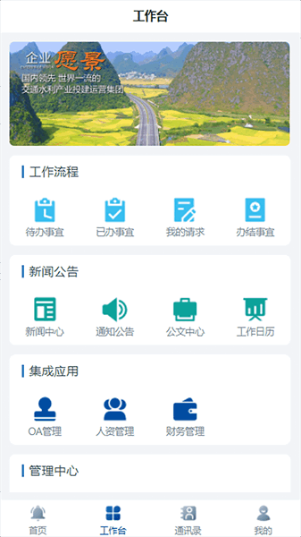 湖南交水建app,一款专门为该公司的员工们打造的在线办公平台,以强大的网络技术为支撑,打造了智能便捷的一站式办公平台,让用户可以线上沟通交流、协商办公、发布重要通告或是进行人员管理等,超级的方便好用,有需要的朋友快来下载体验吧~