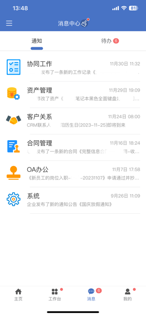 在个人待办中心将用户的工作待办任务进行了记录管理,可随时查看个人待办记录信息处理办公。
